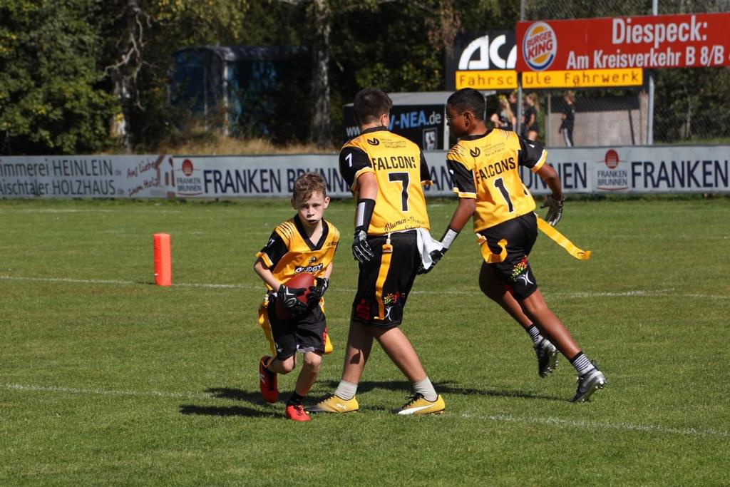 Normalerweise trainiert die Flag-Jugendmannschaft U13 / U16 jeden Dienstag und Donnerstag von 17:00 Uhr bis 18:30 Uhr In der Halle in der Comeniusstraße 4, 91413 Neustadt a.d. Aisch im Winter oder an der Weisen Marter am TSV in Neustadt a.D. Aisch im Sommer.
